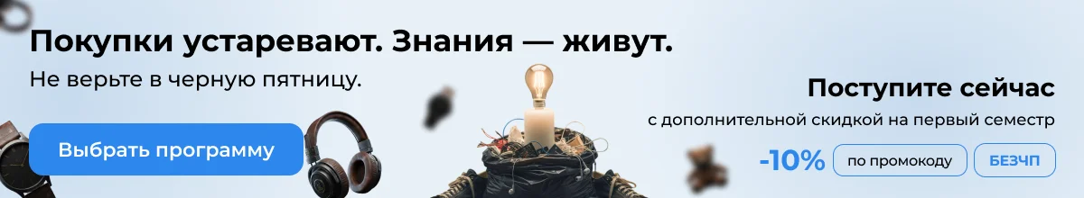 Оплатите сразу весь период обучения и получите скидку. Чтобы узнать размер скидки для выбранной программы, формата обучения и расчётного пеериода — обратитесь к нашему специалисту.